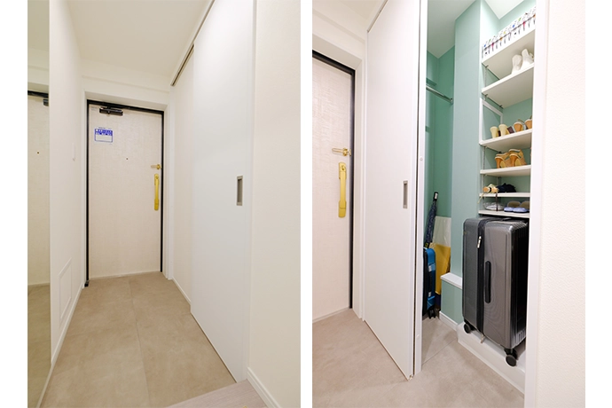 玄関には大容量の玄関収納を設け、出張時に使用するキャリーケースを置くスペースも確保しました。