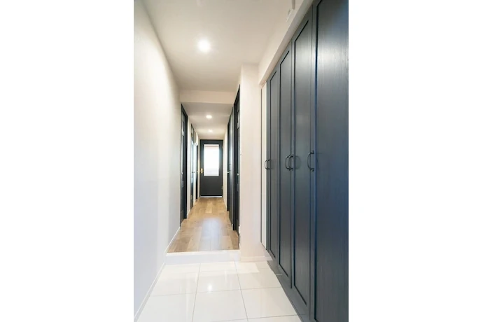 建具にはダークネイビーを採用し、空間全体に統一感をもたせました。