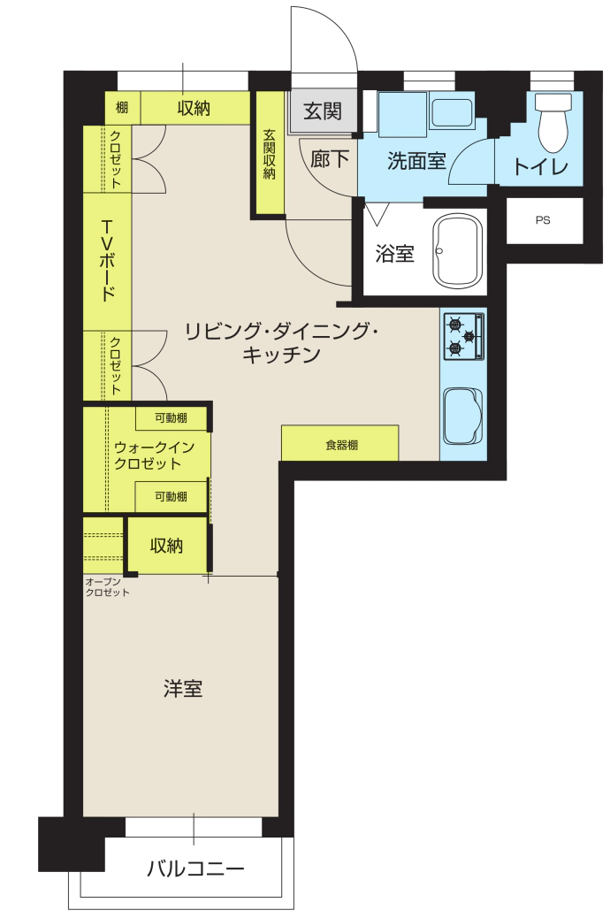 - リビング収納、洋室収納、玄関収納、ウォークインクロゼット、オープンクロゼット、食器棚