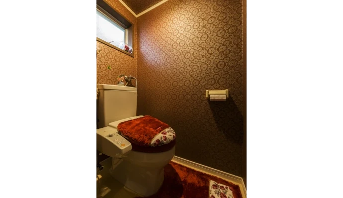 リビングや洋室などが白を基調に統一しているのと対照的に、トイレは、和文様をアクセントとし、遊び心を持たせました。
