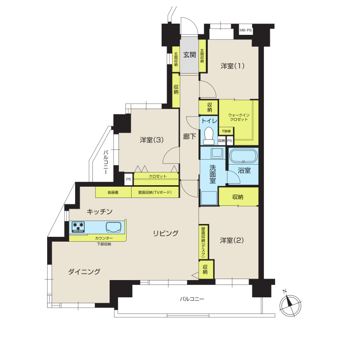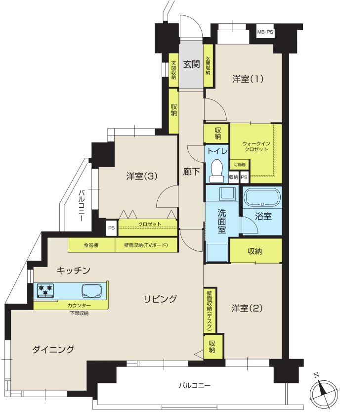 - 壁⾯収納、⾷器棚、洋室収納、ウォークインクロゼット、⽞関収納