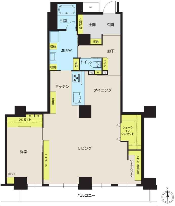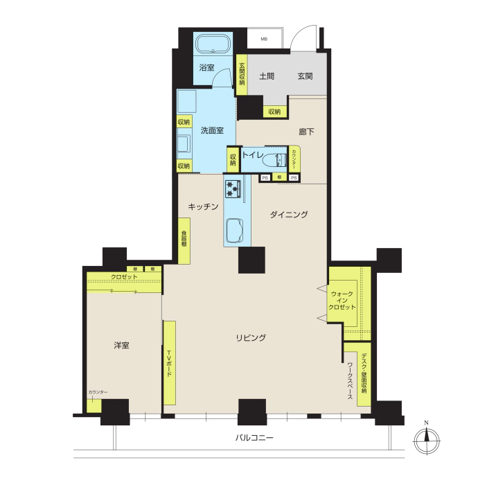- リビング収納、⽞関収納、ウォークインクロゼット、デスク、壁⾯収納