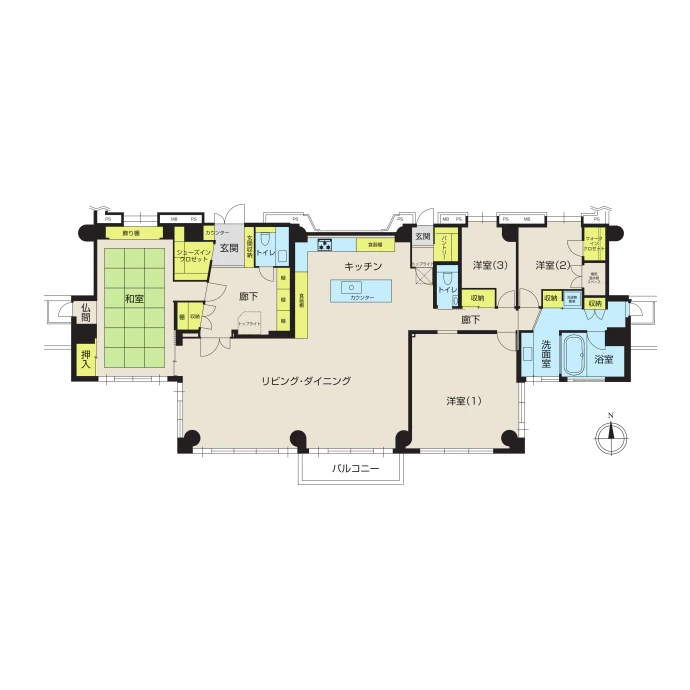 - 食器棚、飾り棚、シューズインクロゼット、玄関収納、廊下収納、カウンター(玄関・キッチン)、パントリー、ウォークインクロゼット、押入、洗面室収納